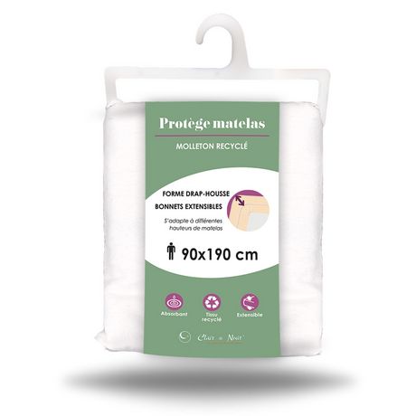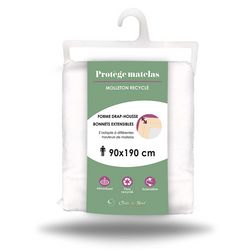 PROTEGE MATELAS FORME DRAP HOUSSE MOLLETON GRATTÉ 2 FACES- 140 G - 70 % COTON RECYCLÉ 30% POLYESTER RECYCLE
