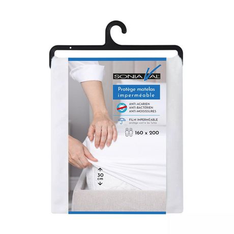 Protège-matelas imperméable forme drap housse avec bonnets 25 cm en bande jersey polyester extensible jusqu'à 30 cm