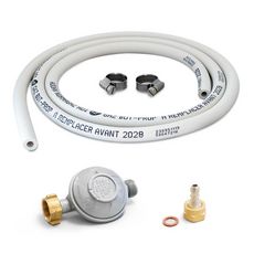 Kit connexion gaz complet pour réchauds gaz tuyau souple 1.50m + Embout tétine + Détendeur butane 28 mbars