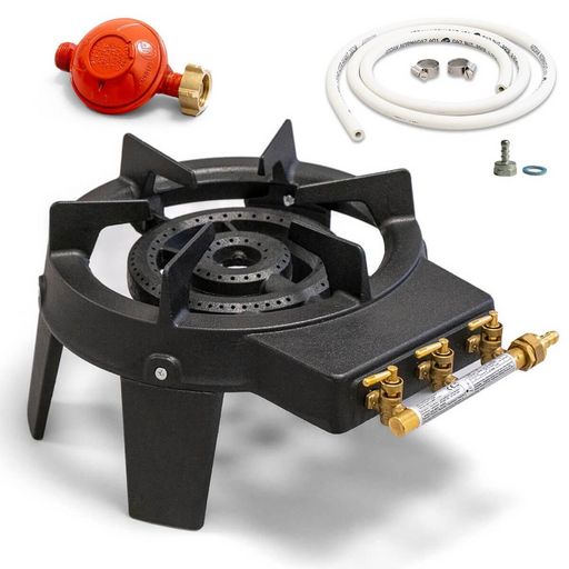 Rechaud à gaz 9,8 KW Fonte véritable 4 pieds 2 bruleurs + Tuyau gaz flexible 1.50m + Détendeur Propane TRIGLAV