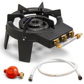 Rechaud à gaz en Fonte véritable 9,8 KW 4 pieds 2 bruleurs + Tuyau gaz à vis 1.50m + Détendeur Propane TRIGLAV