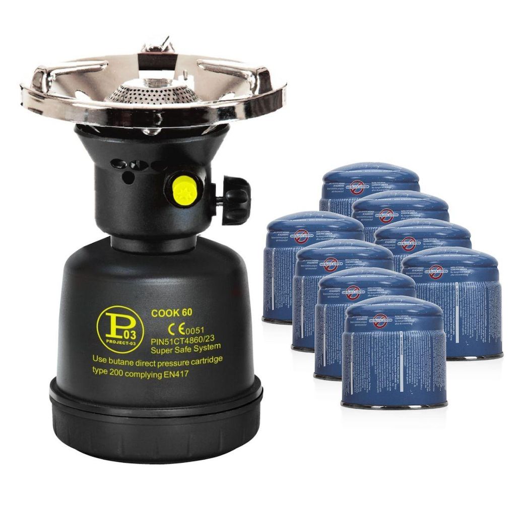 - Pack complet prêt à l'emploi : Réchaud gaz portable + 8 cartouches incluses