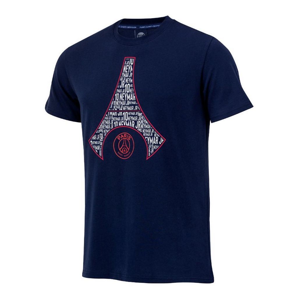 T-shirt du PSG à l'effigie de la tour Eiffel et de Neymar ! Couleur : Marine Coupe altique Col rond Manches courtes Imprimé Neymar dans le dos Imprimé de la tour Eiffel sur la poitrine Composition : 100% coton
