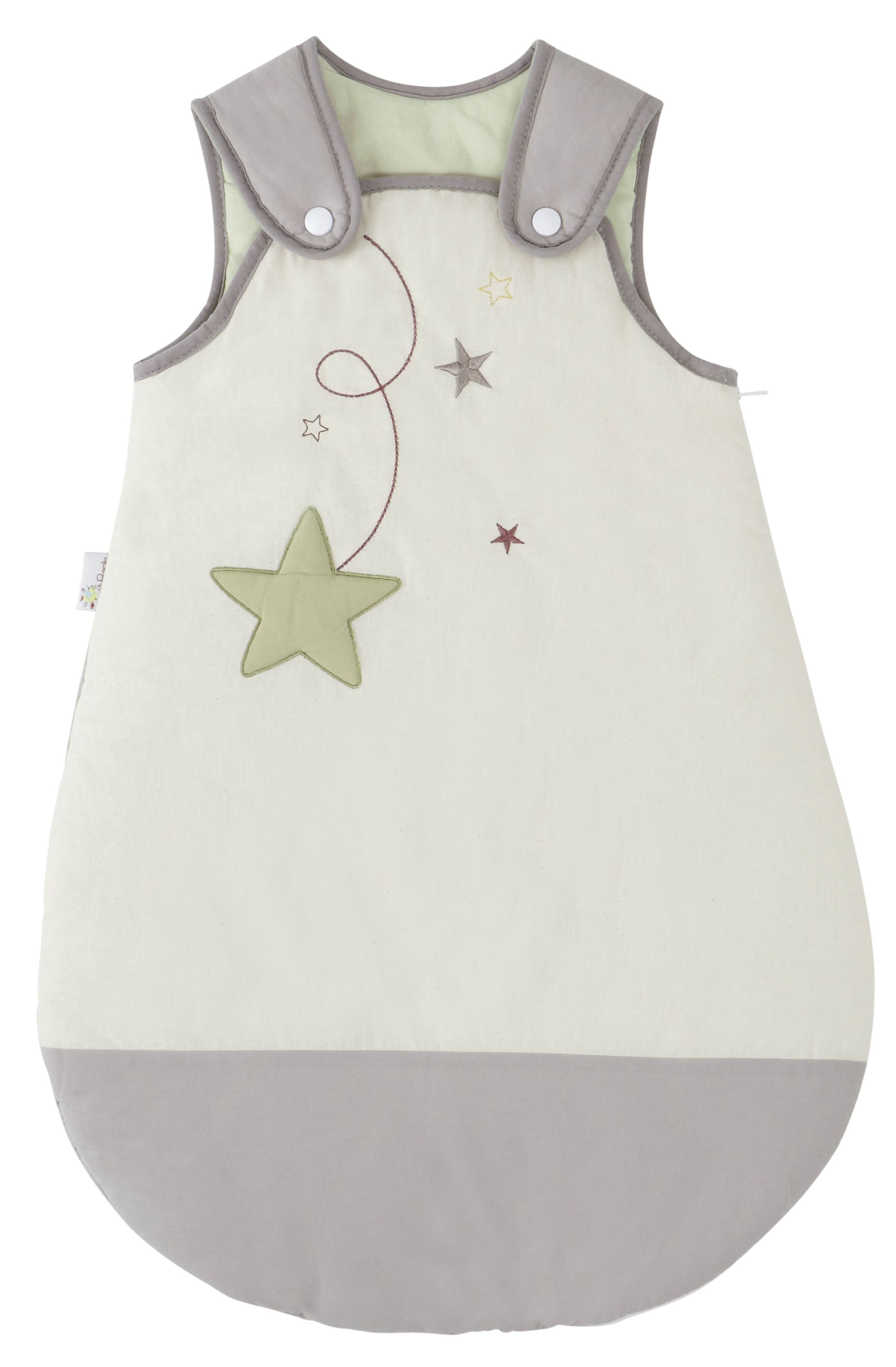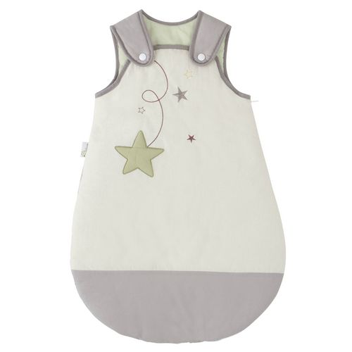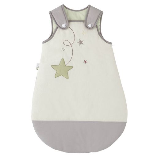 P'tit Basile a conçu pour votre enfant cette gigoteuse en coton biologique de la collection Pluie d'étoiles. Cette gigoteuse brodée aux coloris mixtes est disponible en taille 0-6 mois, 6-36 mois réglable grâce à des nouettes, mais aussi pour les plus petits, en taille 0-1 mois. Pour respecter la peau délicate de bébé et pour plus de douceur, l'enveloppe de cette turbulette est confectionnée avec du coton 100% issu de l'agriculture biologique. Un coton cultivé sans pesticides ni engrais chimiques pour respecter la planète.Toutes saisons, cette gigoteuse convient à des chambres dont la température est comprise entre 18 et 21°c. Sans manches, cette gigoteuse P'tit Basile évite toute production de chaleur excessive et assure une meilleure régulation de la température de l'enfant. Avec ses boutons pressions au niveau des épaules et sa fermeture sur le côté, elle s'ouvre en grand pour coucher facilement bébé.