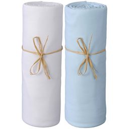 Lot x2 draps housse jersey extensible coton Bio blanc/bleu