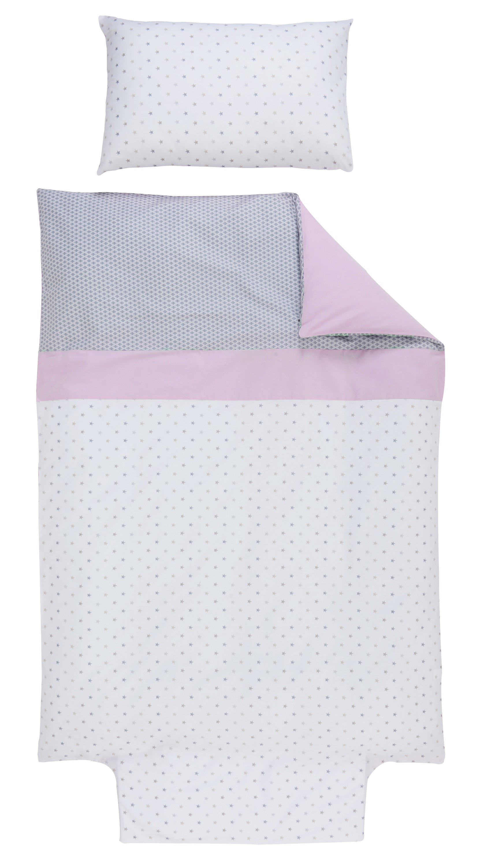 Parure de lit bébé Claudine 100x140 cm + taie 40x60 cm. 100% coton bio. Imprimé mini étoiles. Lavable à 40°,C.