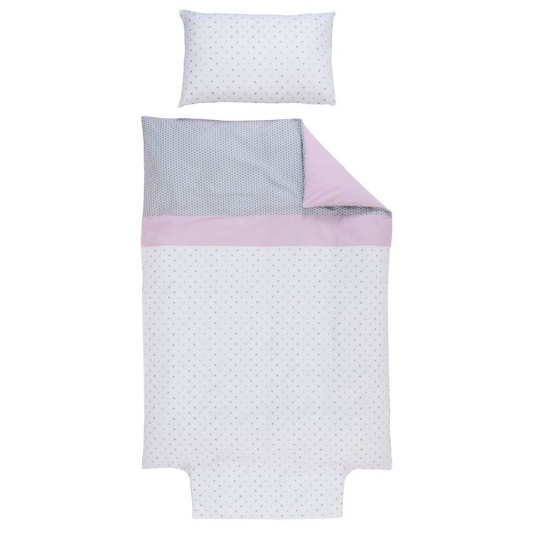 Parure Housse de couette 100x140 cm + taie 40x60 cm Claudine - Gris & rose