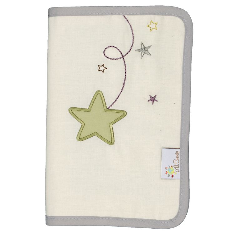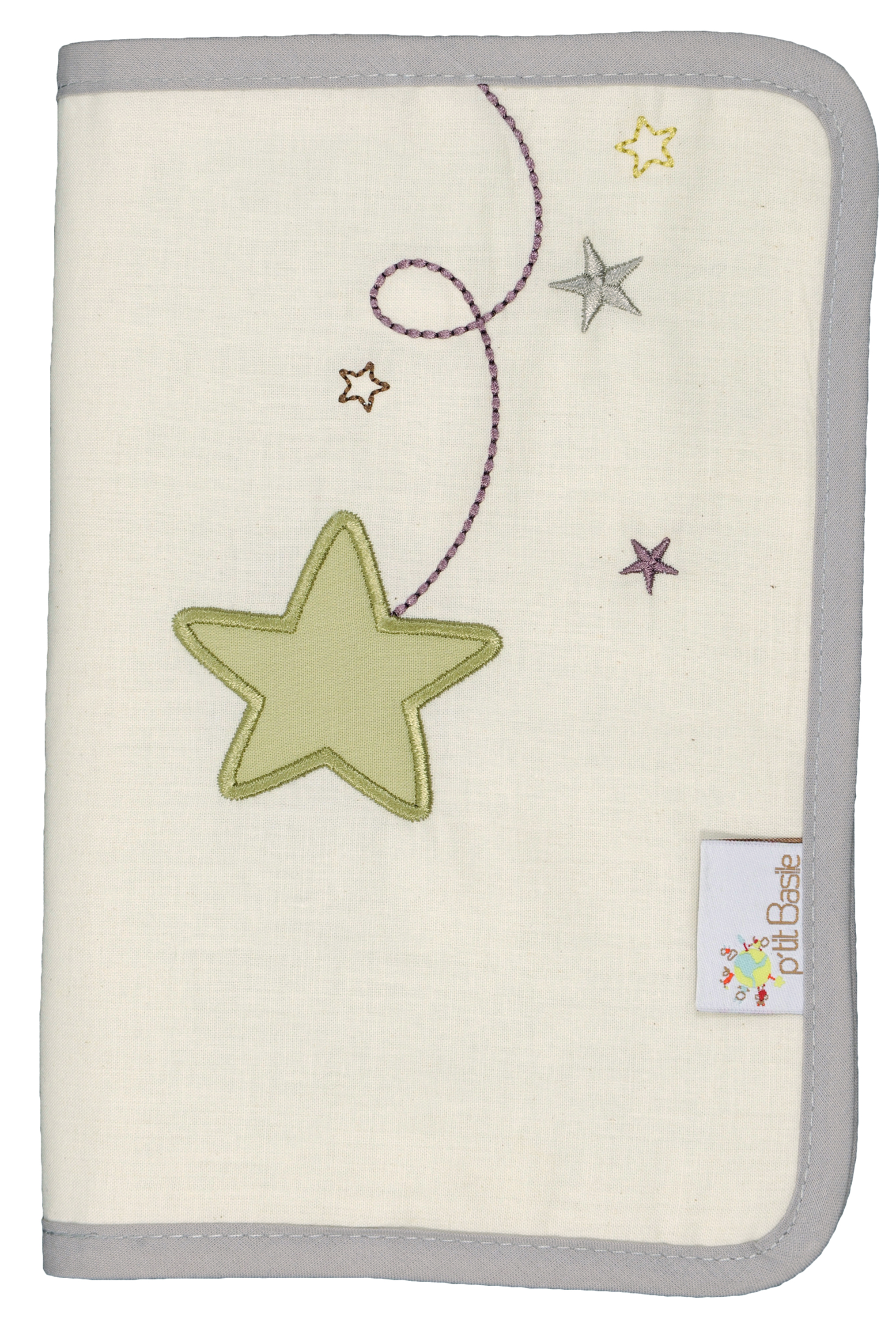 P'tit Basile a dessiné pour votre enfant ce joli protège carnet de santé de la collection Pluie d'étoiles. Coton 100% issu de l'agriculture biologique certifié selon les standards internationaux et reconnus GOTS. Avec ses coloris tendances et mixtes , sa broderie étoile, ce protège carnet est le cad
