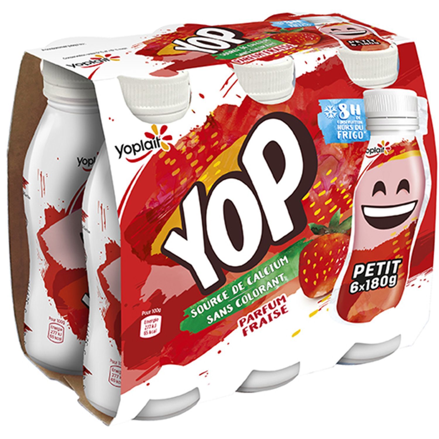 Yaourt à boire sucré aromatisé - YOP, un super snack* pour les ados : c’est un yaourt à boire avec un goût qu’ils vont adorer ! - Une texture nappante unique et nourrissante avec un goût intense. C’est un snack* que vous pouvez boire. - Source de calcium et de vitamine D et sans colorants. - Disponible dans une large gamme de 10 parfums comme le parfum Fraise - Disponible en formats grandes bouteilles (825g, 500g) et en formats à emporter (100g, 180g et 250g) qui se conservent jusqu'à 8h hors du frigo. - YOP NoLimits** *en-cas **Sans limites