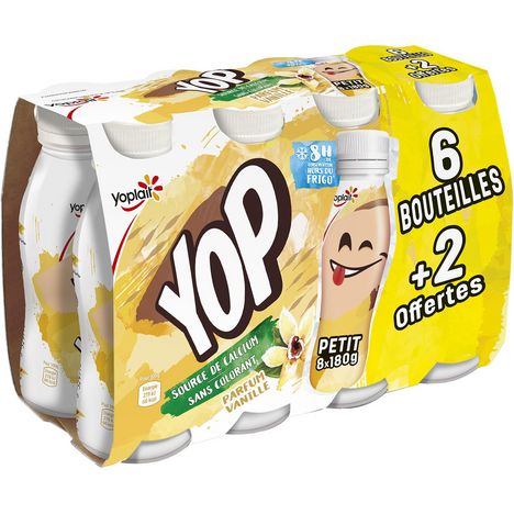 - YOP, un super snack* pour les ados : c’est un yaourt à boire avec un goût qu’ils vont adorer ! - Une texture nappante unique et nourrissante avec un goût intense. C’est un snack* que vous pouvez boire. - Source de calcium et de vitamine D et sans colorants. - Disponible dans une large gamme de 10 parfums comme le parfum Vanille. - Disponible en formats grandes bouteilles (825g, 500g) et en formats à emporter (180g, 250g) qui se conservent jusqu'à 8h hors du frigo. - YOP NoLimits** *en-cas **Sans limites Yaourt à boire sucré aromatisé