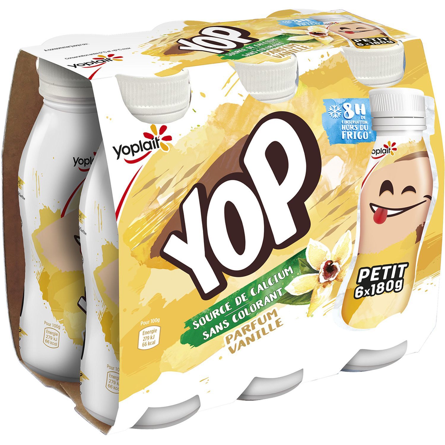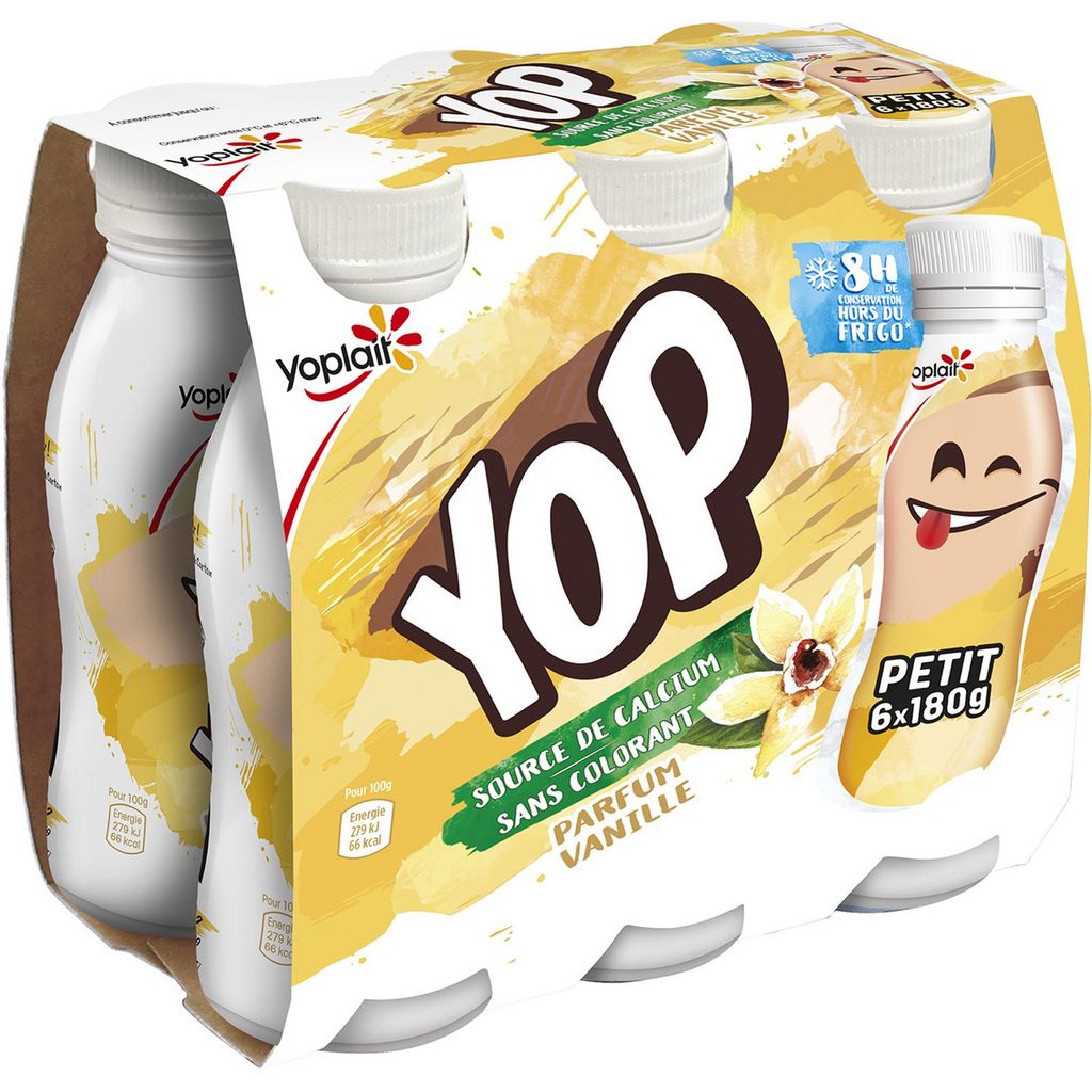 - YOP, un super snack* pour les ados : c’est un yaourt à boire avec un goût qu’ils vont adorer ! - Une texture nappante unique et nourrissante avec un goût intense. C’est un snack* que vous pouvez boire. - Source de calcium et de vitamine D et sans colorants. - Disponible dans une large gamme de 10 parfums comme le parfum Vanille. - Disponible en formats grandes bouteilles (825g, 500g) et en formats à emporter (180g et 250g) qui se conservent jusqu'à 8h hors du frigo. - YOP NoLimits** *en-cas **Sans limites Yaourt à boire sucré aromatisé