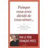Ceux qui vous précèdent sur ce chemin me l'ont enseigné : les premières années de mariage ne sont pas les plus faciles, et les pièges sont nombreux. C'est comme pour les petits enfants : c'est plein de promesses, mais tout est malléable et fragile encore. Il faut sans cesse vérifier les fondations, corriger le tir sur tel ou tel aspect de la vie de couple ou de la vie familiale... Prendre du temps pour s'écouter, pour parler, pour prier. Prendre du temps : une affaire si importante que j'y reviendrai abondamment dans ces pages. Car je me suis laissé faire encore une fois, par vous et beaucoup d'autres couples avec vous, qui m'ont demandé depuis longtemps d'écrire nos conversations, comme je l'avais fait déjà pour les prêtres. [...]. En vous écrivant à vous deux, Jules et Julie, au moment où vous vous lancez dans l'aventure, c'est à tous les couples que je voudrais m'adresser. Pas tant pour enseigner une doctrine que pour écouter, encourager, consoler, corriger au besoin, admirer. Et vous transmettre quelque chose de l'immense tendresse que le Seigneur m'a donné d'éprouver pour vous tous qui me lisez . Père François Potez.
