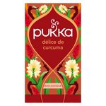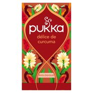 "L'infusion Délice de Curcuma 20 sachets Pukka vous fait passer un moment épicé pour stimuler votre corps avec ce mélange de plantes revigorantes. Une alliance enivrante de curcuma, gingembre et notes au parfum orange. Donnez-vie à ces plantes merveilleuses en les faisant infuser 5 à 15 minutes dans de l'eau fraîchement bouillie. Pukka est une marque engagée, ses plantes sont issues de l'agriculture biologique et tous ses mélanges contiennent des ingrédients certifiés commerce équitable (Fair for Life). Depuis que Tim et Sébastian ont fondé Pukka, nous sommes restés fidèles à notre mission de connecter les Hommes à la beauté et aux merveilles de la nature. Nos thés et infusions issus de l'agriculture biologique sont inspirés de nos connaissances ancestrales des plantes, afin de vous proposer de merveilleux mélanges de plantes et une symphonie de saveurs délicieuses à chaque gorgée.