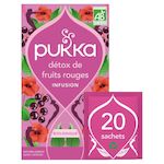 INFUSION BIO DETOX DE FRUITS ROUGES : Parfaite pour faire une pause gourmande, cette infusion 20 sachets Pukka vous offre une tisane à la saveur acidulée aux notes sucrées.