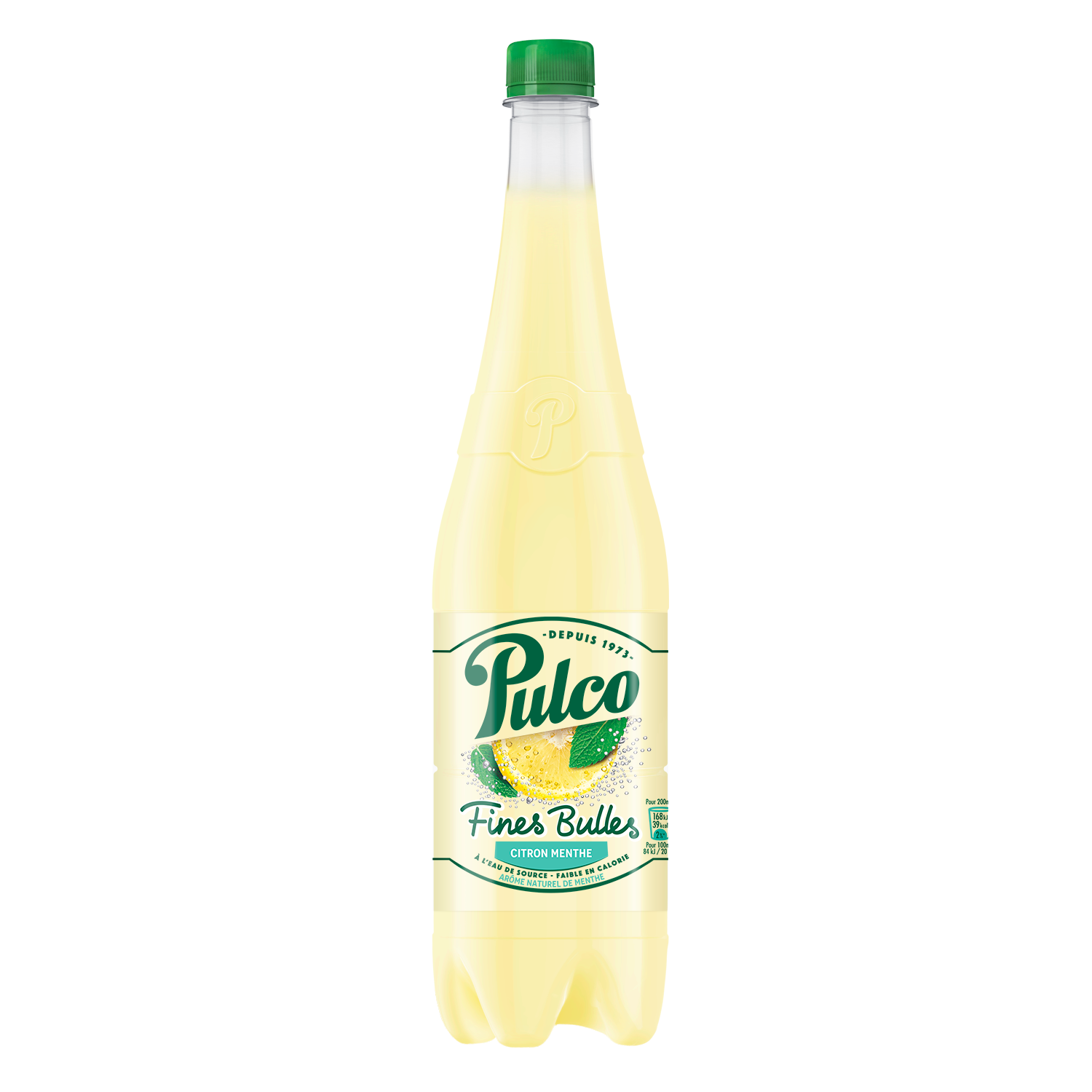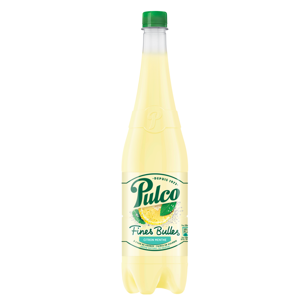 Boisson rafraîchissante gazéifiée à l'eau de source et au citron, à l'arôme naturel de menthe. Arôme naturel de menthe Pulco Fines Bulles Citron & Menthe, c’est la rencontre d’une citronnade au bon goût de citron et de menthe, et des bulles fines et délicates. Une recette faible en calories, sans édulcorant, ni conservateur.