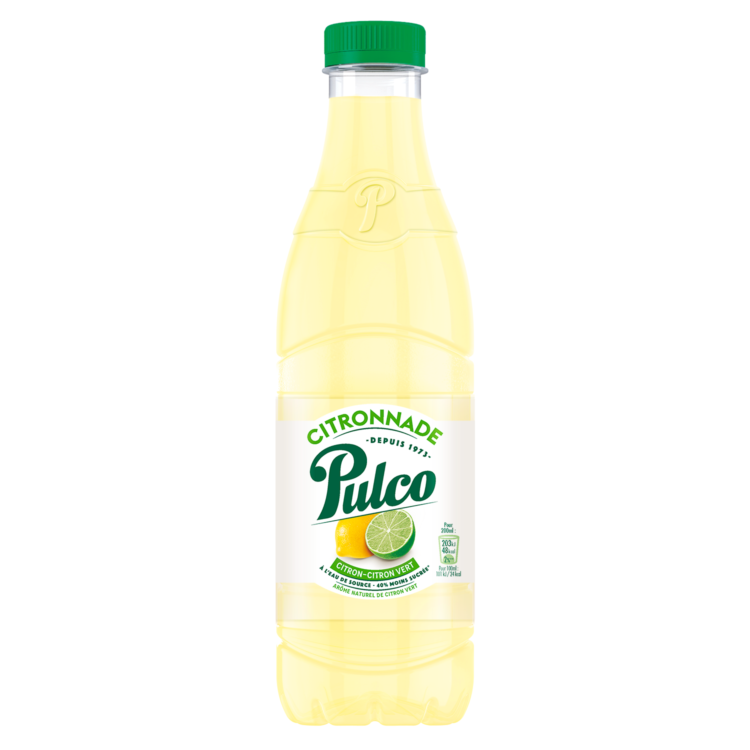 Pulco Citronnade Citron-Citron Vert, une citronnade prête à boire, sans colorant, sans édulcorant ni conservateur au bon goût de citron et de citron vert. Boisson rafraîchissante aux fruits et à l'eau de source, aromatisée.
