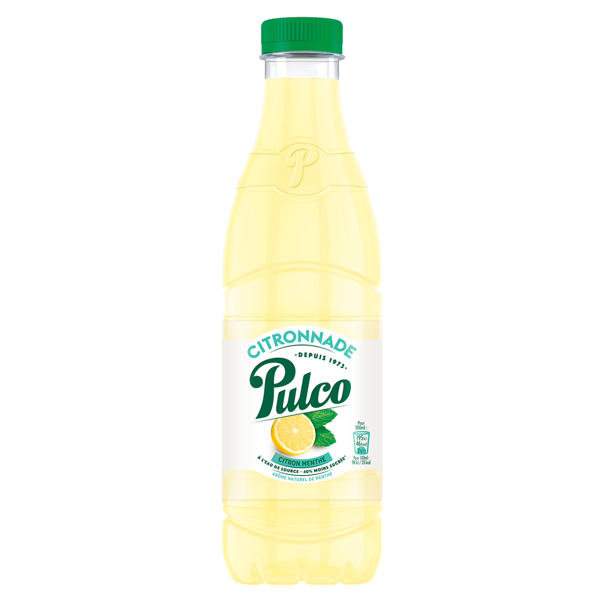 Pulco Citronnade Citron Menthe, une citronnade prête à boire, sans colorant, sans édulcorant ni conservateur au bon goût de de citron et de menthe. Boisson rafraîchissante aux fruits et à l'eau de source, à l'arôme naturel de menthe. arôme naturel de menthe