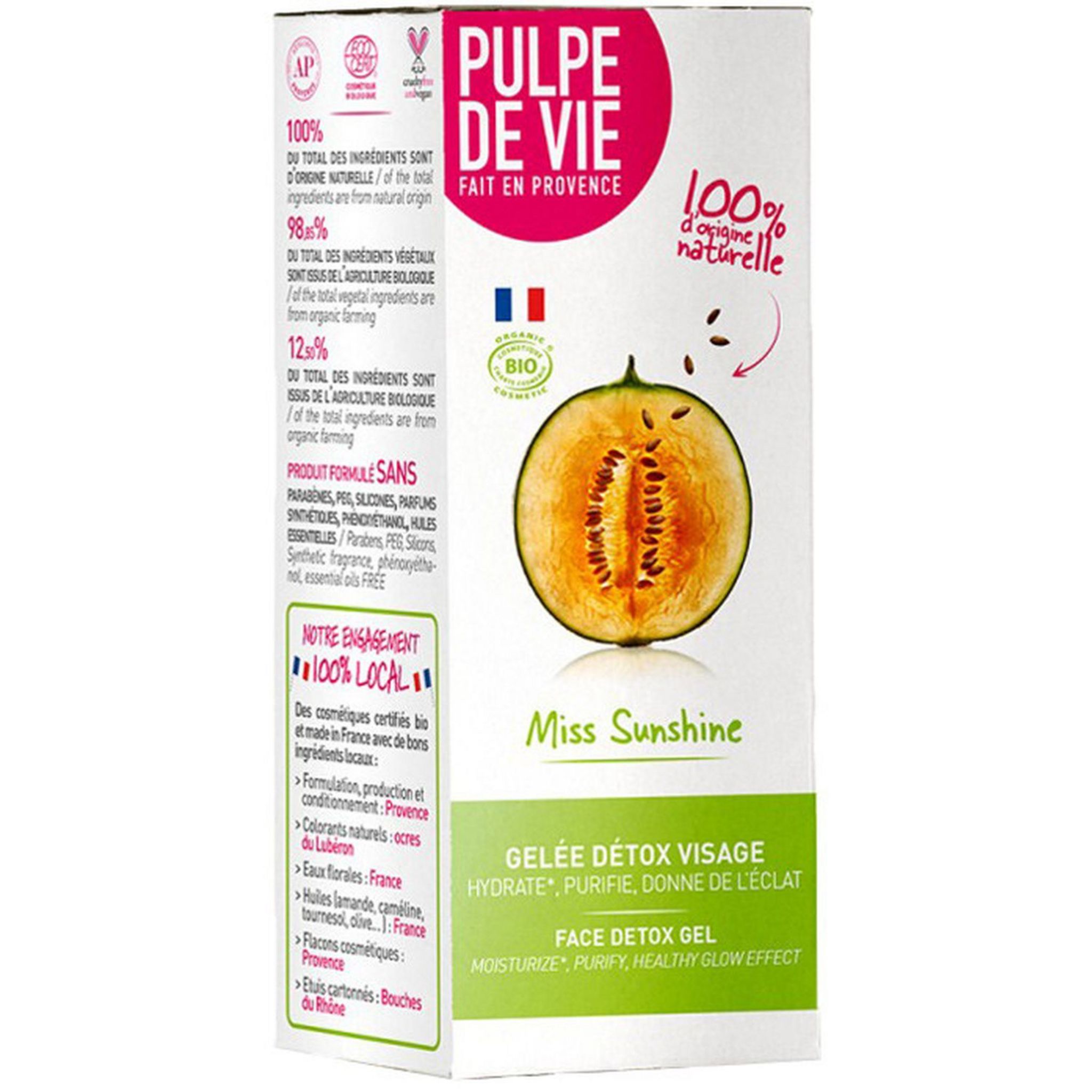 Miss Sunshine Une gelée détox pour le visage qui hydrate, purifie et donne de l'éclat pour un teint reposé et frais comme si vous reveniez de vacances.