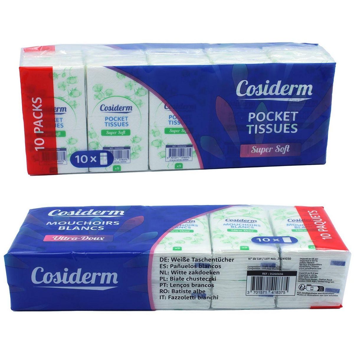 10 paquets de 10 mouchoirs