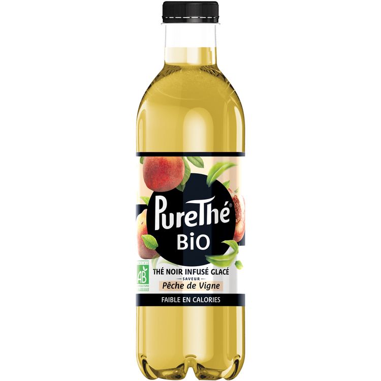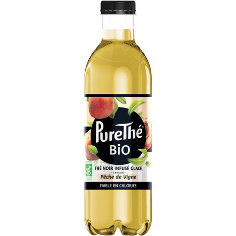 Boisson à l'infusion de thé noir issue de l'agriculture biologique, à l'arôme naturel de pêche de vigne PureThé Bio Infusé Glacé Pêche de Vigne PET 1L