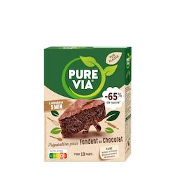 Sachet de préparation pour fondant (175g): farine de blé, sucre, édulcorant: érythritol, cacao maigre en poudre, poudres à lever: diphosphates et carbonates de sodium, sel. Sachet de chocolat noir à 70% de cacao (102g): pate de cacao, sucre, beurre de cacao, émulsifiant: lécithine de soja, extrait de vanille.