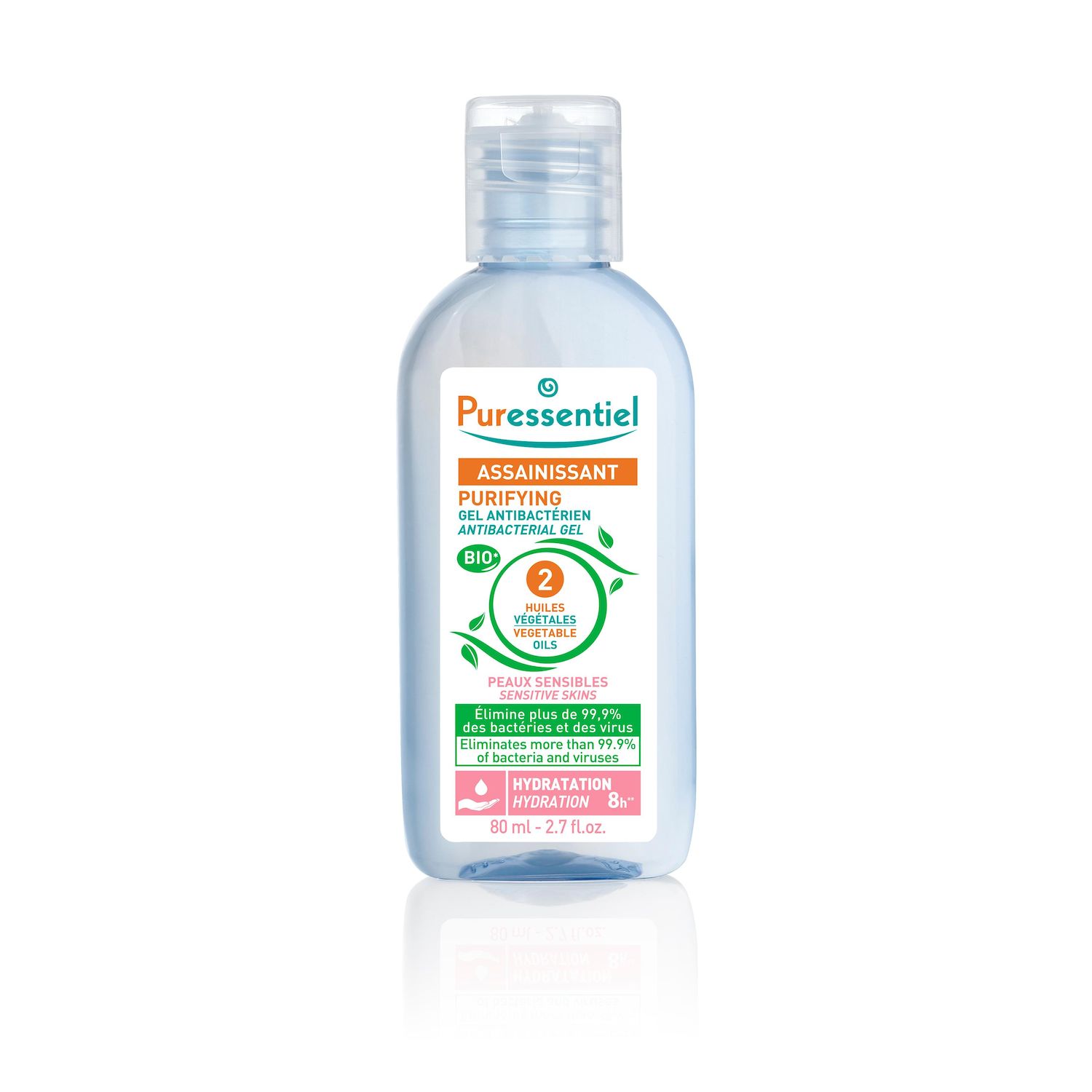 PURESS Gel Antibactérien Assainissant "Peaux sensibles" aux 2 Huiles Végétales BIO - 80 ml