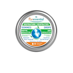 Ces Gommes Menthe - Eucalyptus à base d'huile essentielle de menthe ont un effet apaisant sur la gorge, le pharynx et les cordes vocales Les gommes Menthe - Eucalyptus sont des compléments alimentaires aux actifs 100% d'origine naturelle composées de gomme d'acacia, associée aux huiles essentielles de menthe des champs et d'eucalyptus globuleux. Elles sont Sans sucres, à l'extrait végétal de stévia, Sans colorant, sans conservateurs, sans gélatine animale et sans arôme de synthèse.. Puressentiel Respiratoire est gamme complète 100% naturelle pour aider à lutter contre les désagréments de l'hiver et les sensibilités saisonnières ! Découvrez . Evitez les sources d'épidémies et d'allergies avec le spray aérien aux 41 huiles essentielles. La protection 100% nature de l'hiver.