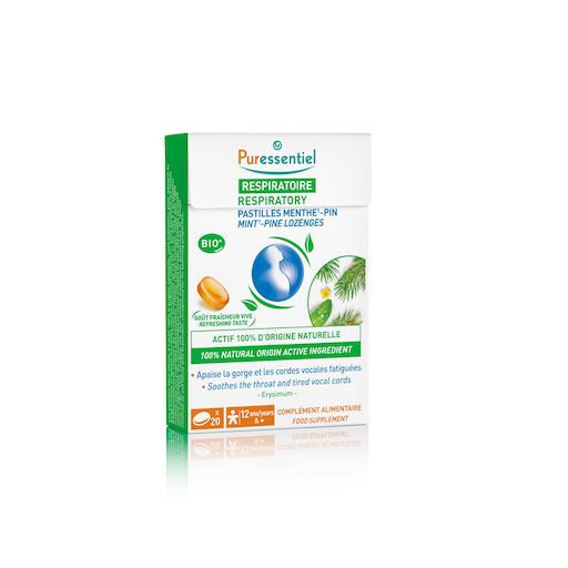 INGRÉDIENTS ET QUANTITÉS POUR 6 PASTILLES : AGENT DE CHARGE : ISOMALT, EAU, EXTRAIT SEC D'ERYSIMUM (SISYMBRIUM OFFICINALE - PARTIE AÉRIENNE) 100 MG, HUILE ESSENTIELLE DE *ROMARIN À CINÉOLE BIO (ROSMARINUS OFFICINALIS L. - PARTIE AÉRIENNE) 18,1 MG, HUILE VÉGÉTALE DE COLZA (BRASSICA NAPUS L - GRAINES) 12 MG. ARÔME : MENTHOL 9,7 MG, ARÔME NATUREL DE PIN AVEC AUTRES ARÔMES NATURELS, HUILE ESSENTIELLES