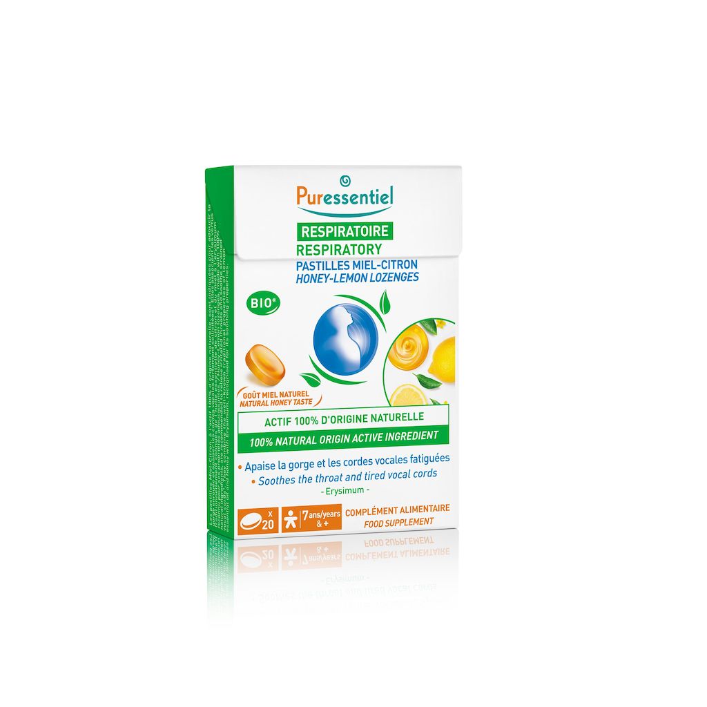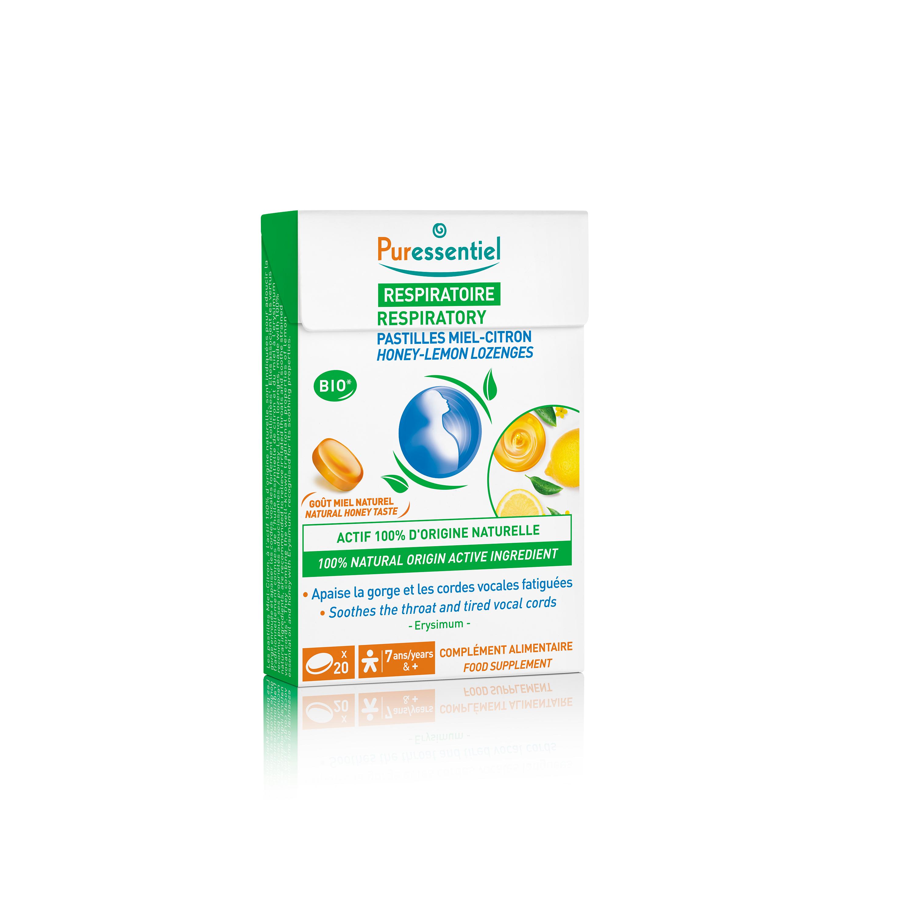 INGRÉDIENTS ET QUANTITÉS POUR 6 PASTILLES : AGENT DE CHARGE : ISOMALT, EXTRAIT SEC DE PARTIE AÉRIENNE D'ERYSIMUM (SISYMBRIUM OFFICINALE) 100 MG, HUILE ESSENTIELLE DE ZESTE DE CITRON (CITRUS LIMON) 72 MG, ARÔME NATUREL, MIEL 9,6 MG