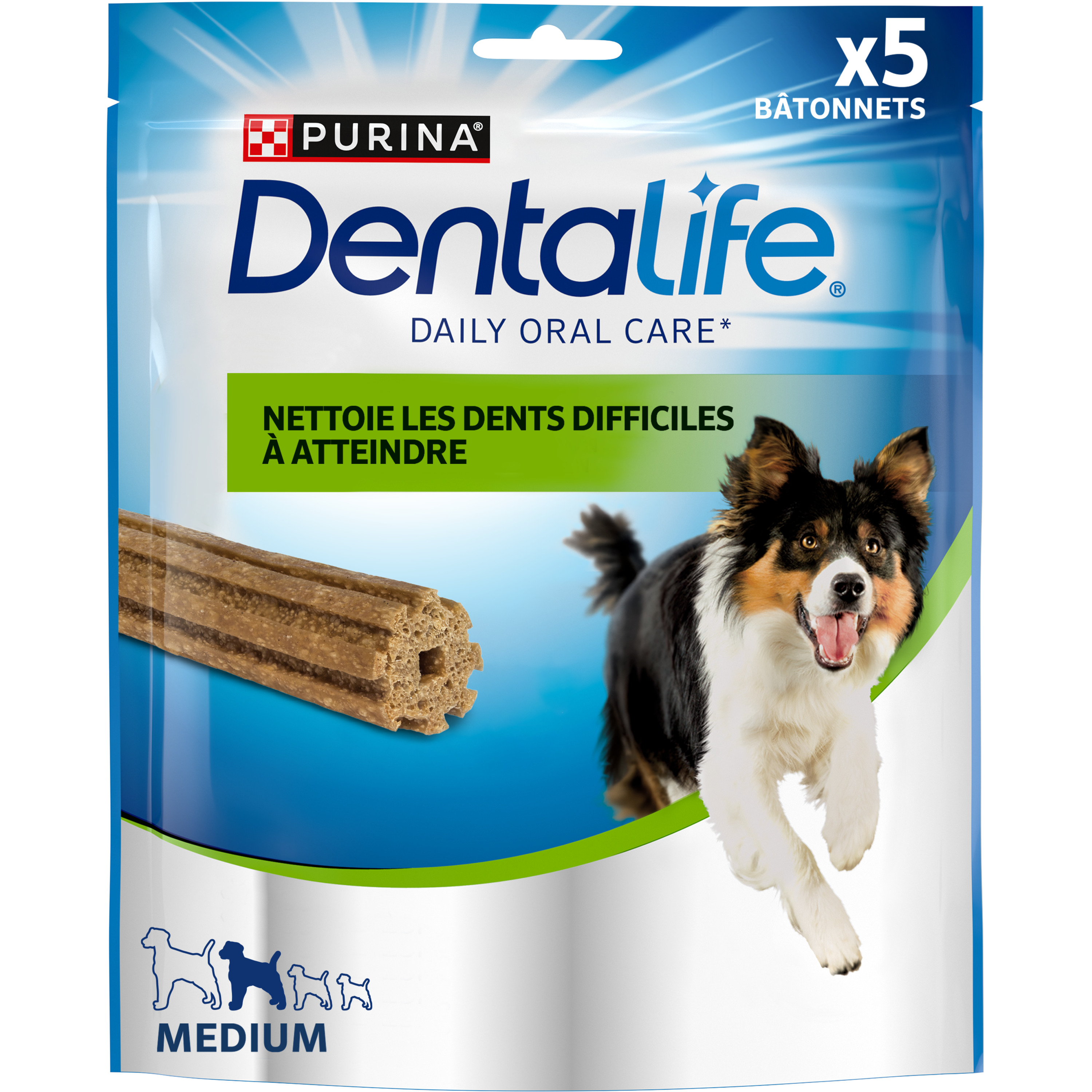 Votre chien a des besoins spécifiques et l'aider à maintenir une bonne hygiène bucco-dentaire contribue à son bien-être au quotidien.C'est pourquoi les experts PURINA ont développé Purina® DentaLife™, un bâtonnet à mâcher innovant, scientifiquement prouvé pour aider à nettoyer même les dents les plus difficiles à atteindre, qui sont les plus touchées par la formation du tartre et de la plaque.Nos Friandises à mâcher sont conçus pour un usage quotidien, pour plus d'efficacité.Adoptez dès aujourd'hui le reflexe Dentalife au quotidien.