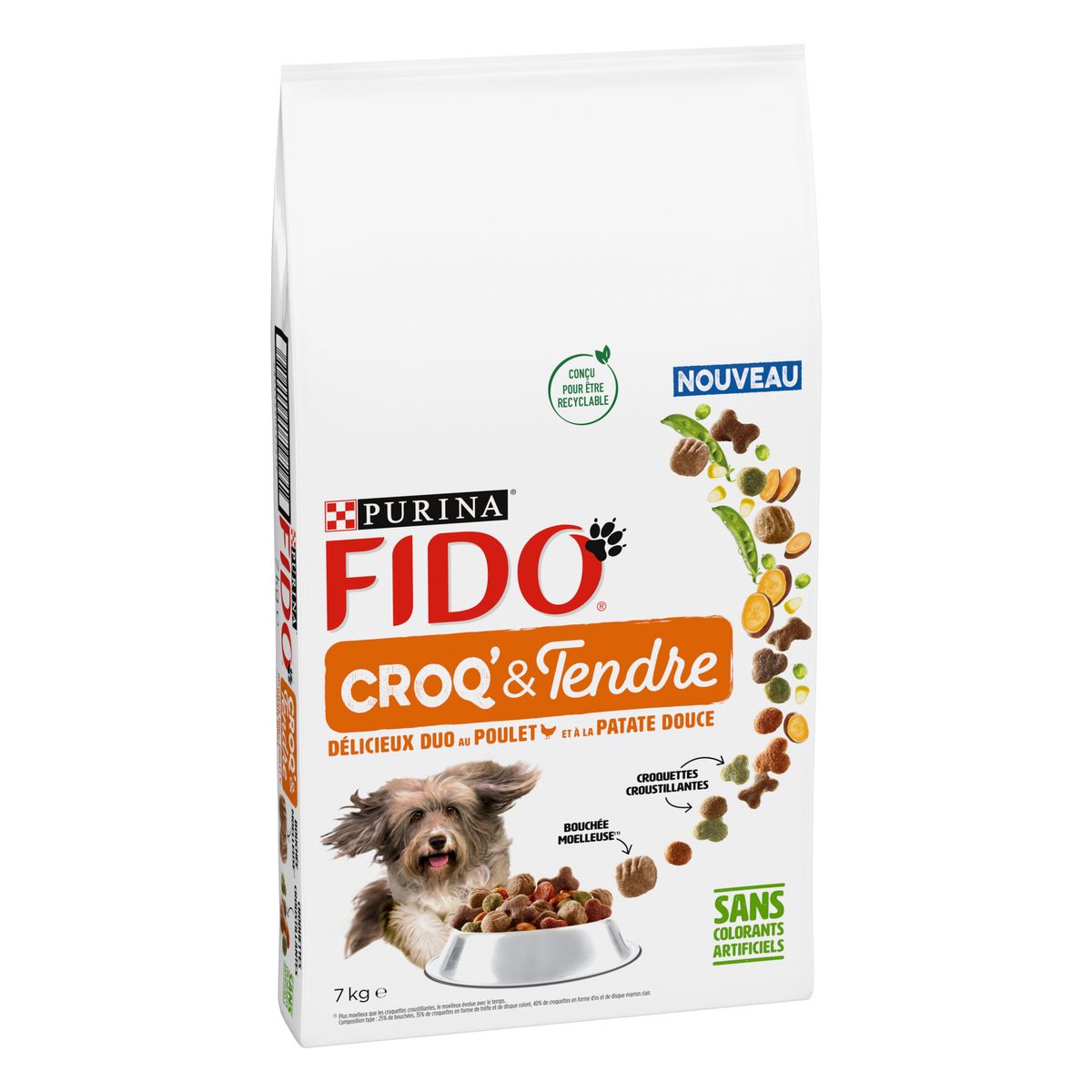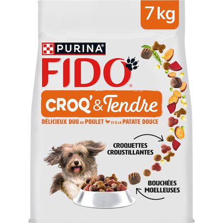 Fido Croq' & Tendre Sachet de croquettes duo au poulet et à la patate douce pour chien