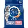 PURINA ONE Adulte est une recette nutritionnellement adaptée aux besoins des chats âgés de 1 an et plus.Avoir un microbiome intestinal équilibré est essentiel pour la bonne santé de votre chat, car il a un impact direct sur son système immunitaire. Le microbiome est un écosystème contenant des trillions de micro-organismes qui vivent dans l'intestin et sont uniques à chaque chat. L'équilibre des micro-organismes est important pour soutenir la bonne santé digestive, le système immunitaire et le bien-être général de votre chat. PURINA ONE BIFENSIS est une formule nutritionnelle unique contenant des bactéries fonctionnelles bénéfiques, les Lactobacillus. Scientifiquement prouvée, leur action renforce le système immunitaire de votre chat de l'intérieur et contribue ainsi à protéger son microbiome intestinal. PURINA ONE BIFENSIS contient des ingrédients de haute qualité, dont un prébiotique : la chicorée. Celle-ci nourrit les bonnes bactéries de l'intestin, afin d'améliorer le microbiome intestinal de votre chat pour le maintenir en bonne santé. Une digestion saine, un système immunitaire fort et un pelage brillant, constatez des résultats visibles sur la santé de votre chat aujourd'hui et demain.