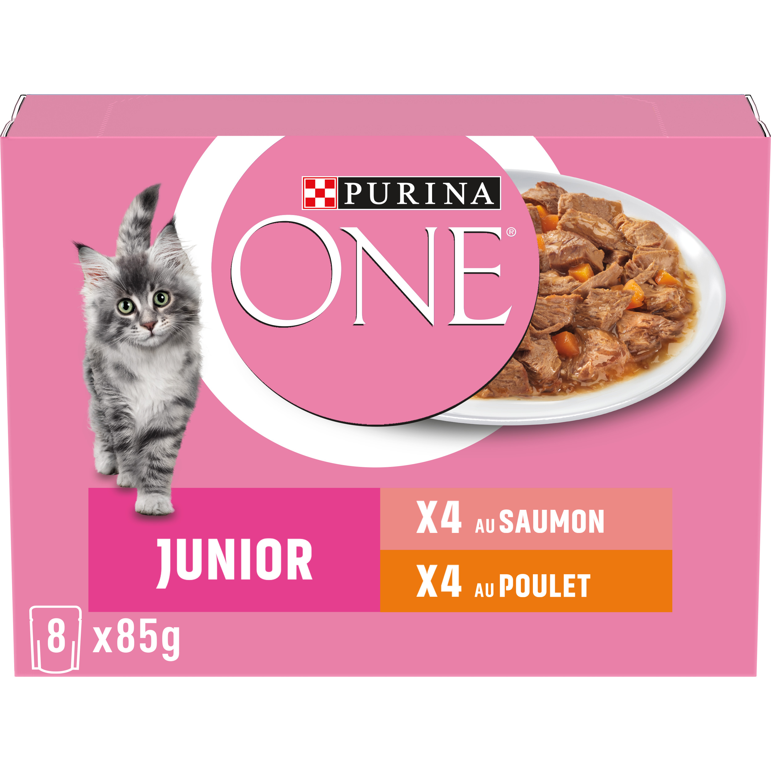 Sachets repas poulet et saumon aux carottes pour chat junior