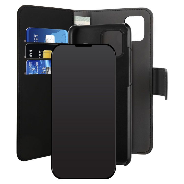Protection détachable - Coque rigide magnétique - Se loge dans le folio - 3 emplacements pour carte de crédit - 1 emplacement pour billets - Compatible chargement sans fil