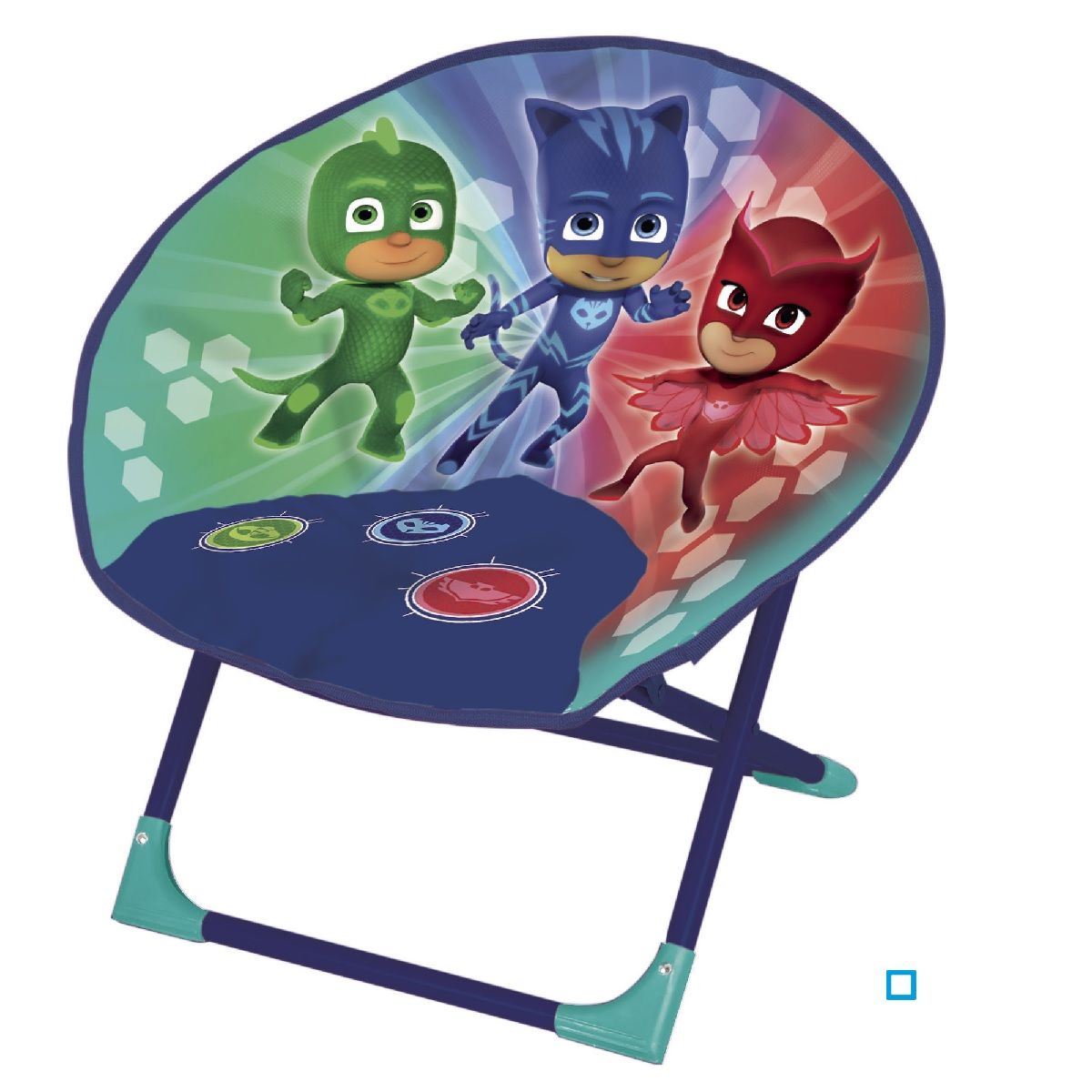 Siège Lune imprimé Pyjmasks en polyester, armature tubes acier Ø16/13mm.