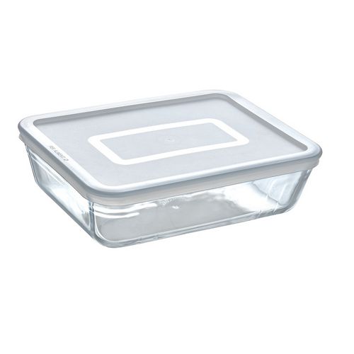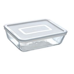 Boite de conservation en verre borosilicate avec couvercle plastique passant du four au micro (sans le couvercle) en passant par le congélateur et frigo. Compatible au lave vaisselle Compatible au micro ondes