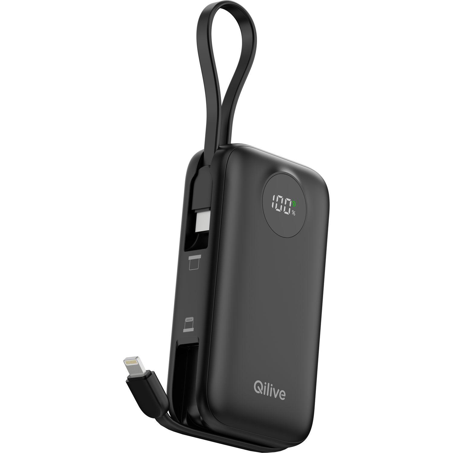 Oubliez les câbles emmêlés ou oubliés ! La batterie Qilive 20W (2) se distingue par sa praticité grâce à ses câbles USB-C et Lightning intégrés. Branchez directement votre iPhone, iPad ou tout appareil Android sans chercher vos accessoires. Et pour encore plus de polyvalence, elle dispose de ports de chargement supplémentaires USB-C et USB-A, vous permettant de recharger jusqu'à quatre appareils simultanément.