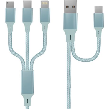 Câble de charge Lightning/MUSB/USB C - Bleu