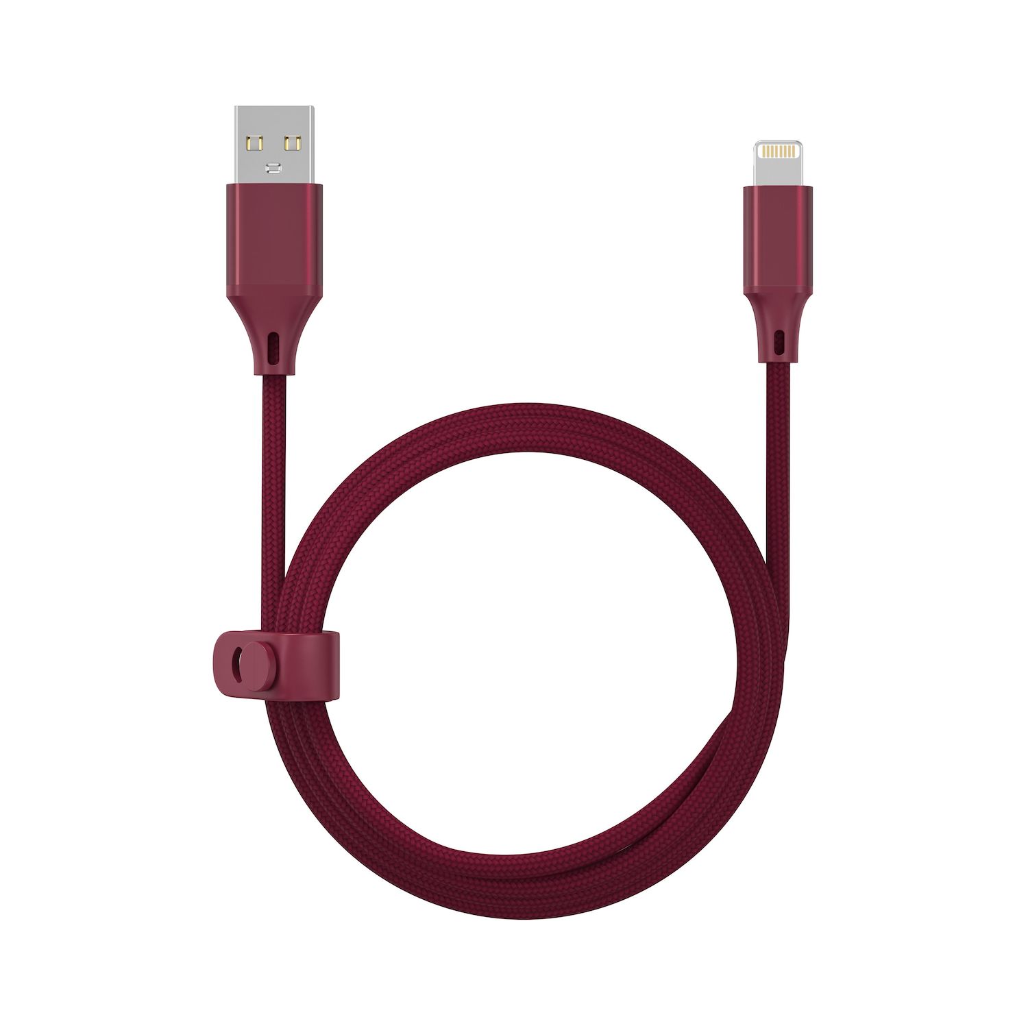 Câble de charge USB A/Lightning Textile - Bordeaux