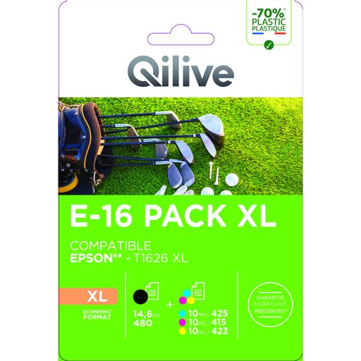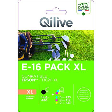 Choisissez le pack QILIVE E-16 XL pour bénéficier d'une qualité d'impression supérieure, d'une brillance améliorée et d'une performance constante. Fiabilité et excellence sont au rendez-vous pour toutes vos exigences d'impression couleur et monochrome.
