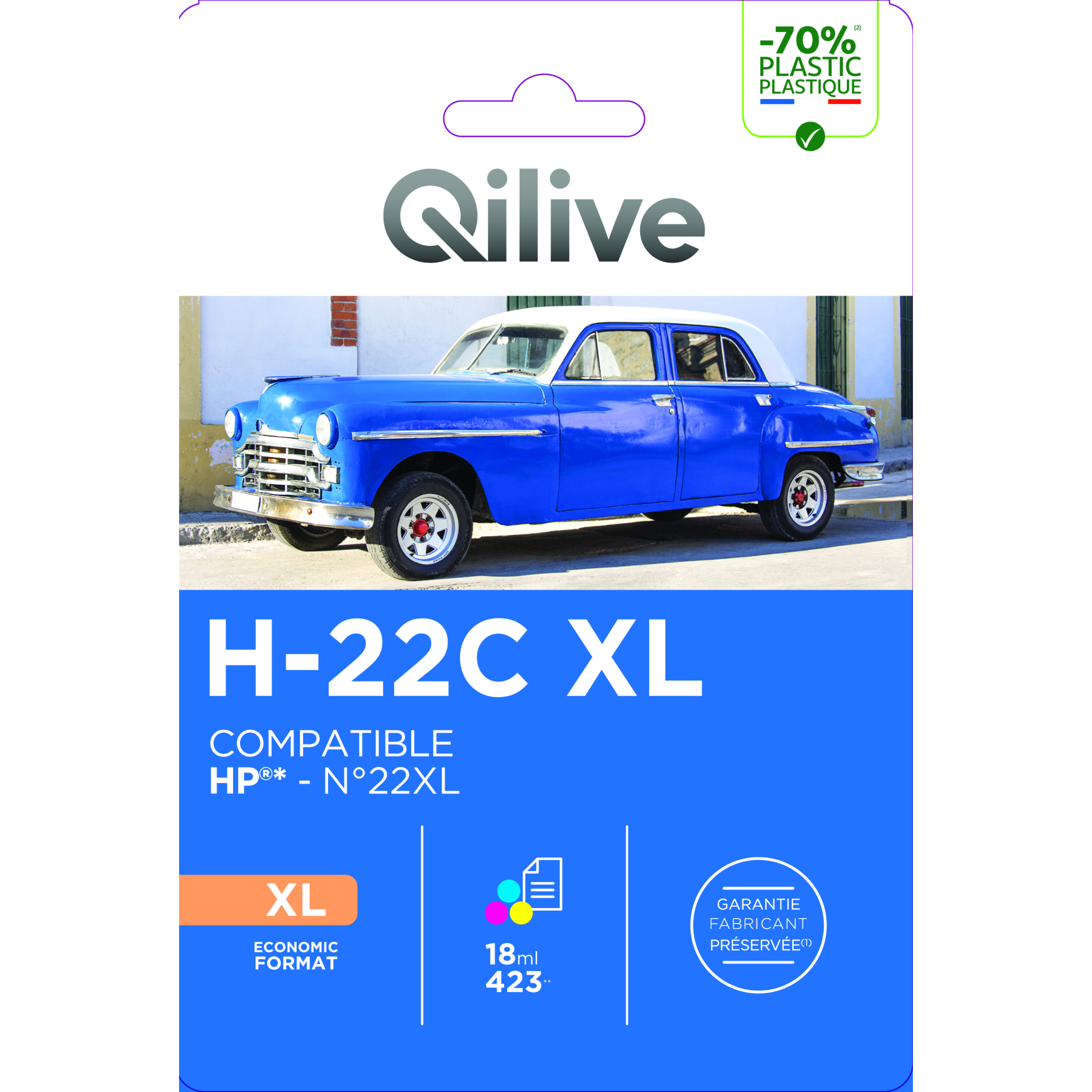 Cette cartouche est compatible avec l'imprimante HP N°22XL - CMY.