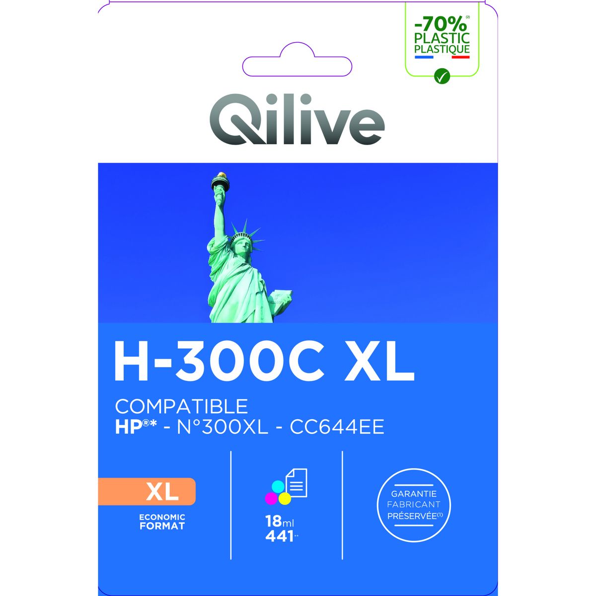 Cette cartouche est compatible avec l'imprimante HP N°300XL CC644-CMY.