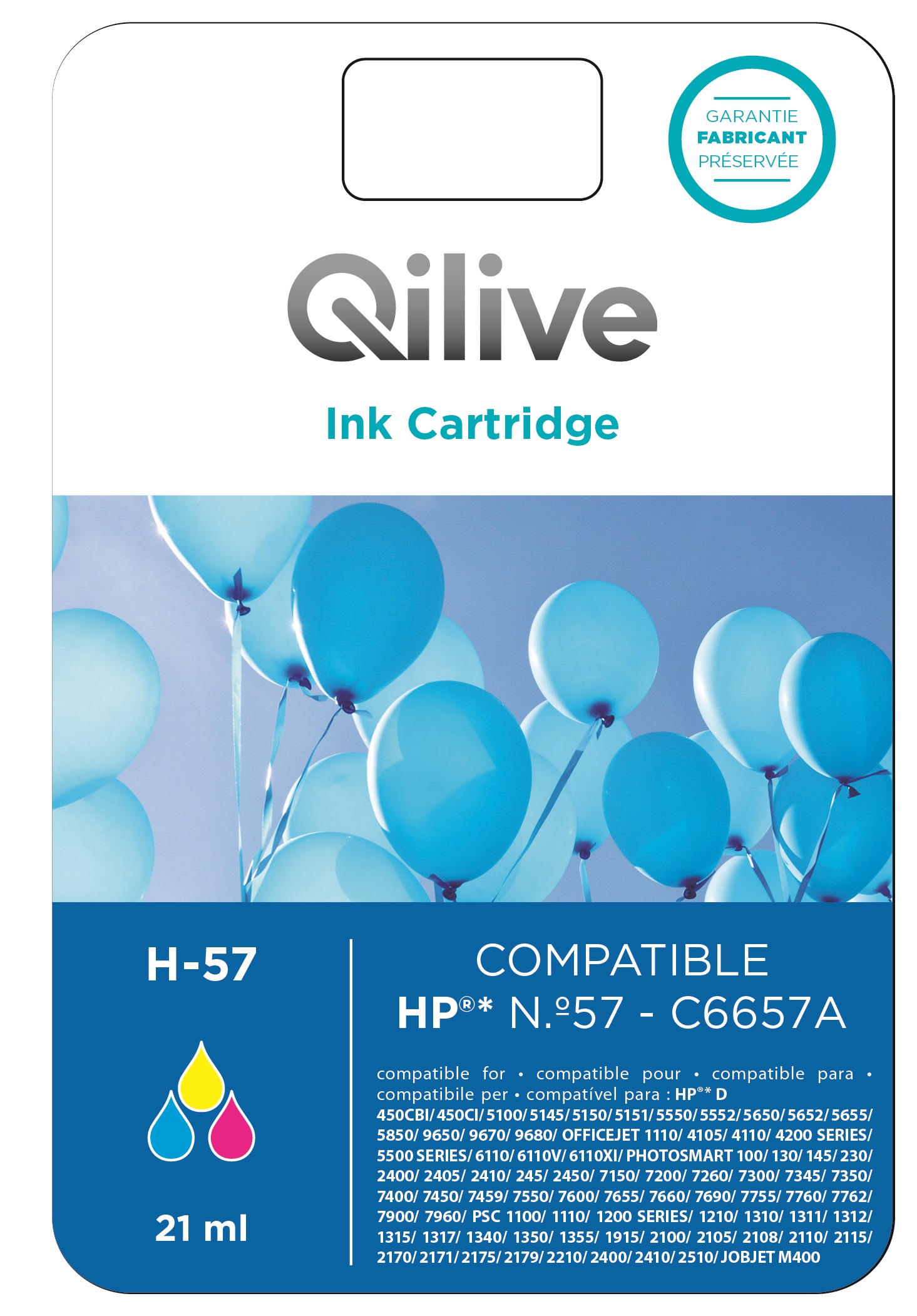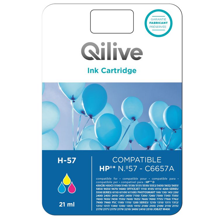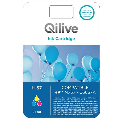 QILIVE Cartouche CMJ H-57Cette cartouche est compatible avec l'imprimante HP N°57 - C6657A.Qilive est née pour permettre aux clients Auchan d'accéder à la meilleure technologie, au meilleur prix. Qilive, c'est un développement permanent des fonctionnalités et des innovations technologiques pour touj