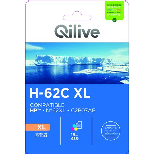 Optez pour la performance et l'économie : avec la cartouche QILIVE H-62C XL Couleurs, donnez une nouvelle dimension à toutes vos impressions.