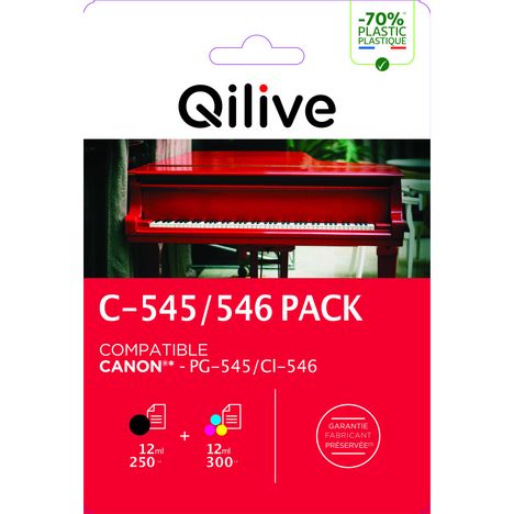 Choisissez le pack QILIVE C PGI 545 + CLI 546 pour bénéficier d'une qualité d'impression constante et de couleurs fidèles, page après page. La fiabilité et la performance QILIVE sont au rendez-vous pour toutes vos exigences d'impression quotidiennes.