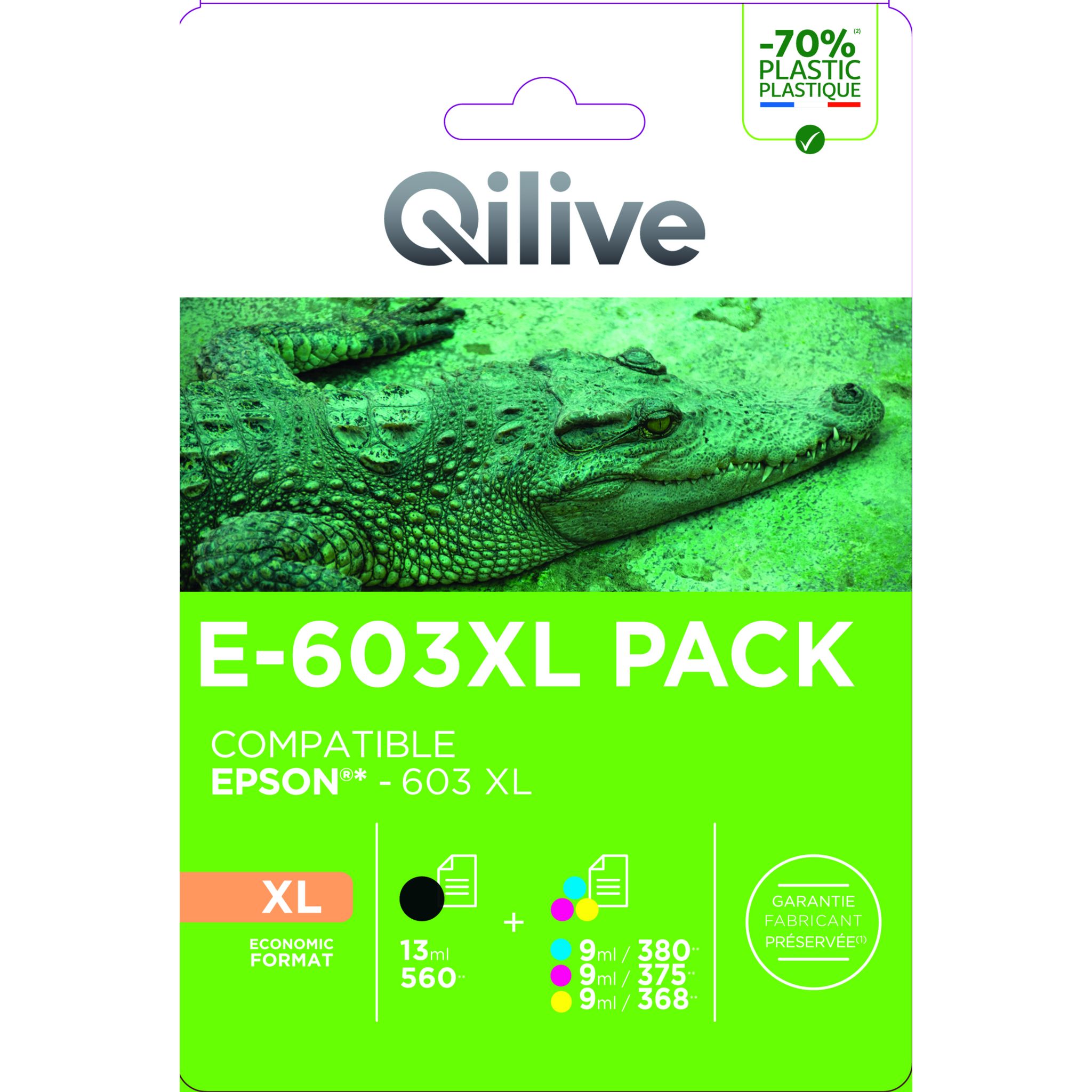 Découvrez le Pack de Cartouches d'encre QILIVE E-603 XL 4 couleurs, votre solution complète pour des impressions éclatantes et économiques au quotidien ! Conçu pour remplacer les cartouches Epson 603XL (série "Étoile de mer" ou "Starfish"), ce pack vous offre des couleurs vives et un noir profond, garantissant des documents professionnels et des photos mémorables, le tout à un excellent rapport qualité-prix.
