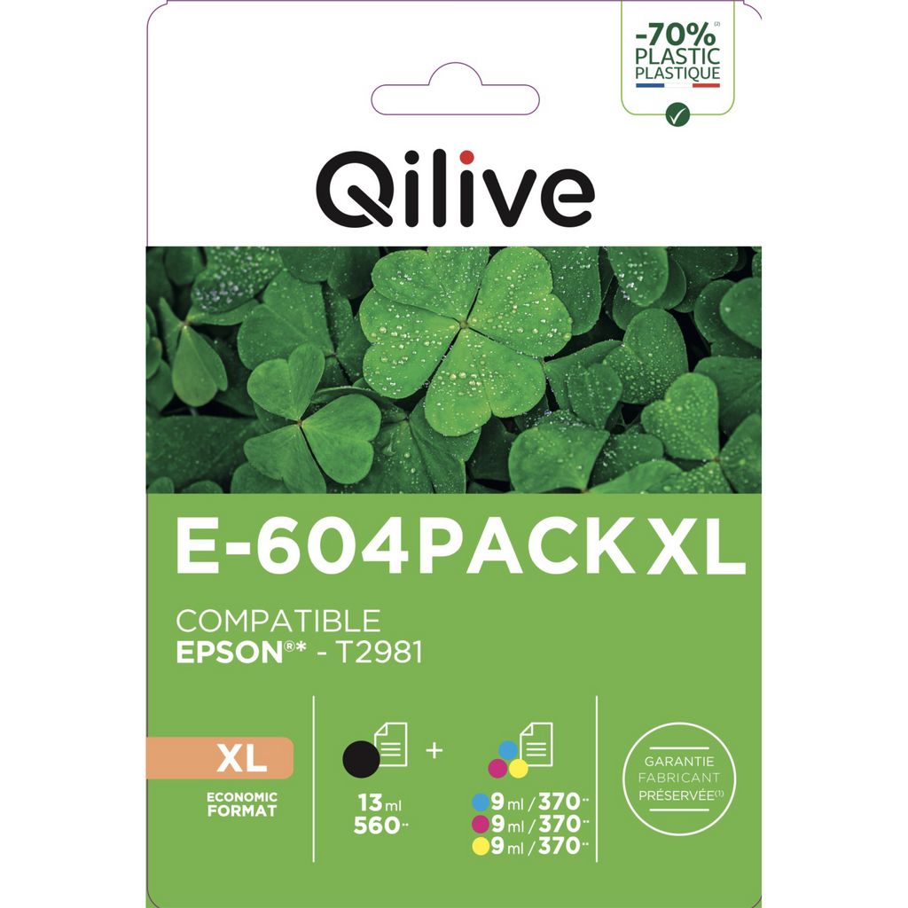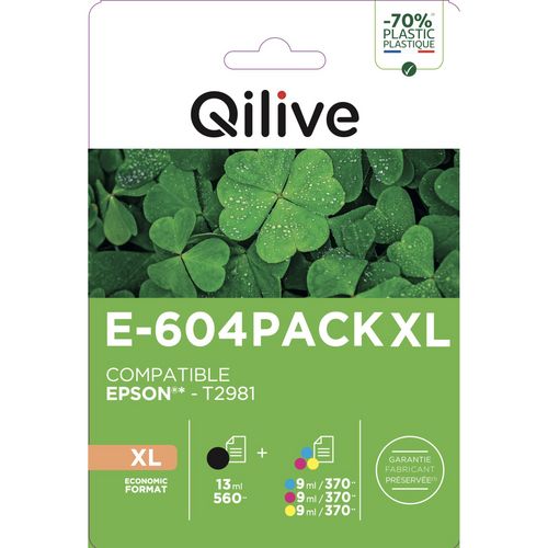 Optez pour le Pack de Cartouches QILIVE EPSON 604 PACK XL et assurez-vous des impressions couleur et monochrome de haute qualité avec une autonomie prolongée, tout en profitant des avantages économiques et de la fiabilité QILIVE !
