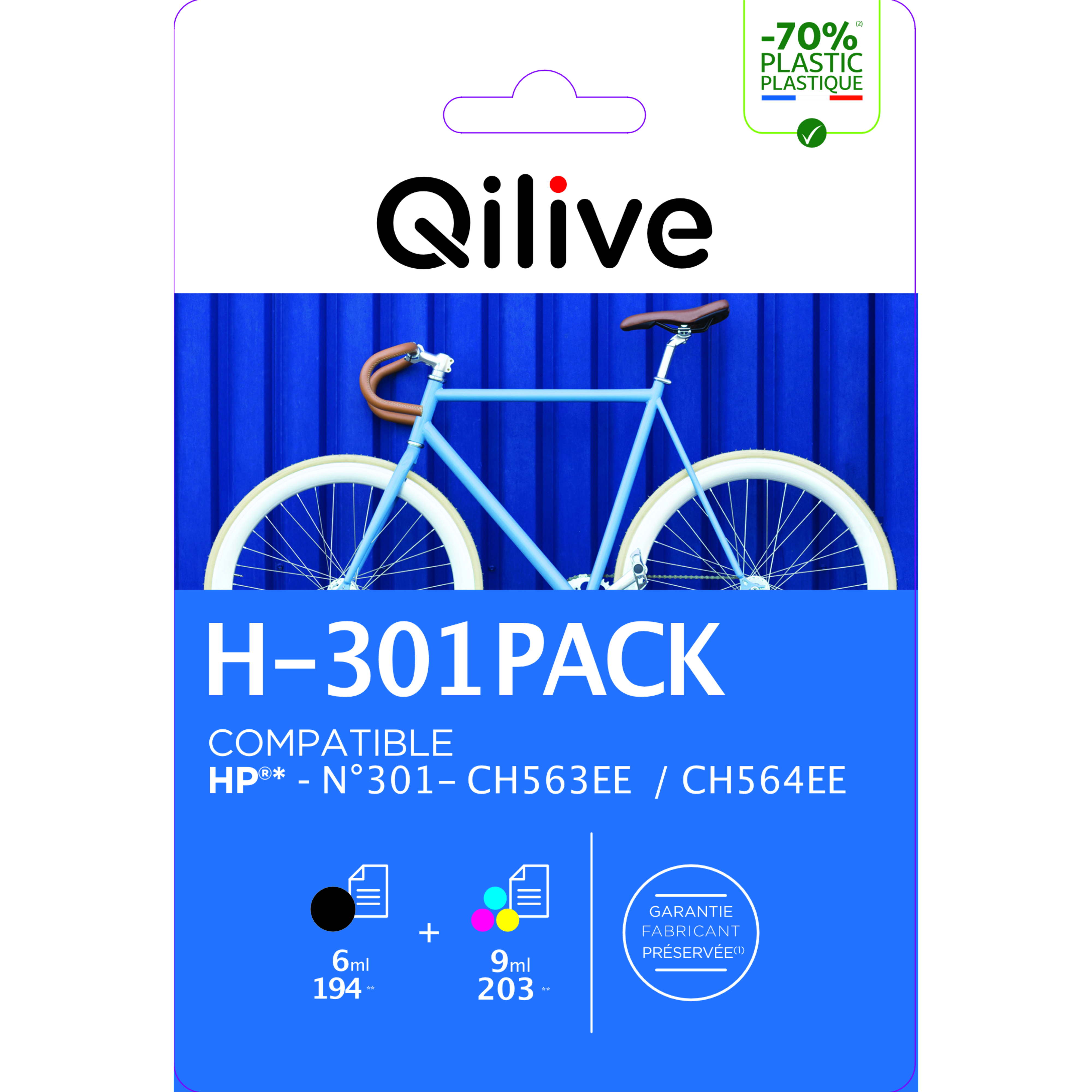 Découvrez le pack de cartouches d'encre QILIVE H-301 B+C, votre solution complète et économique pour des impressions éclatantes avec votre imprimante HP !