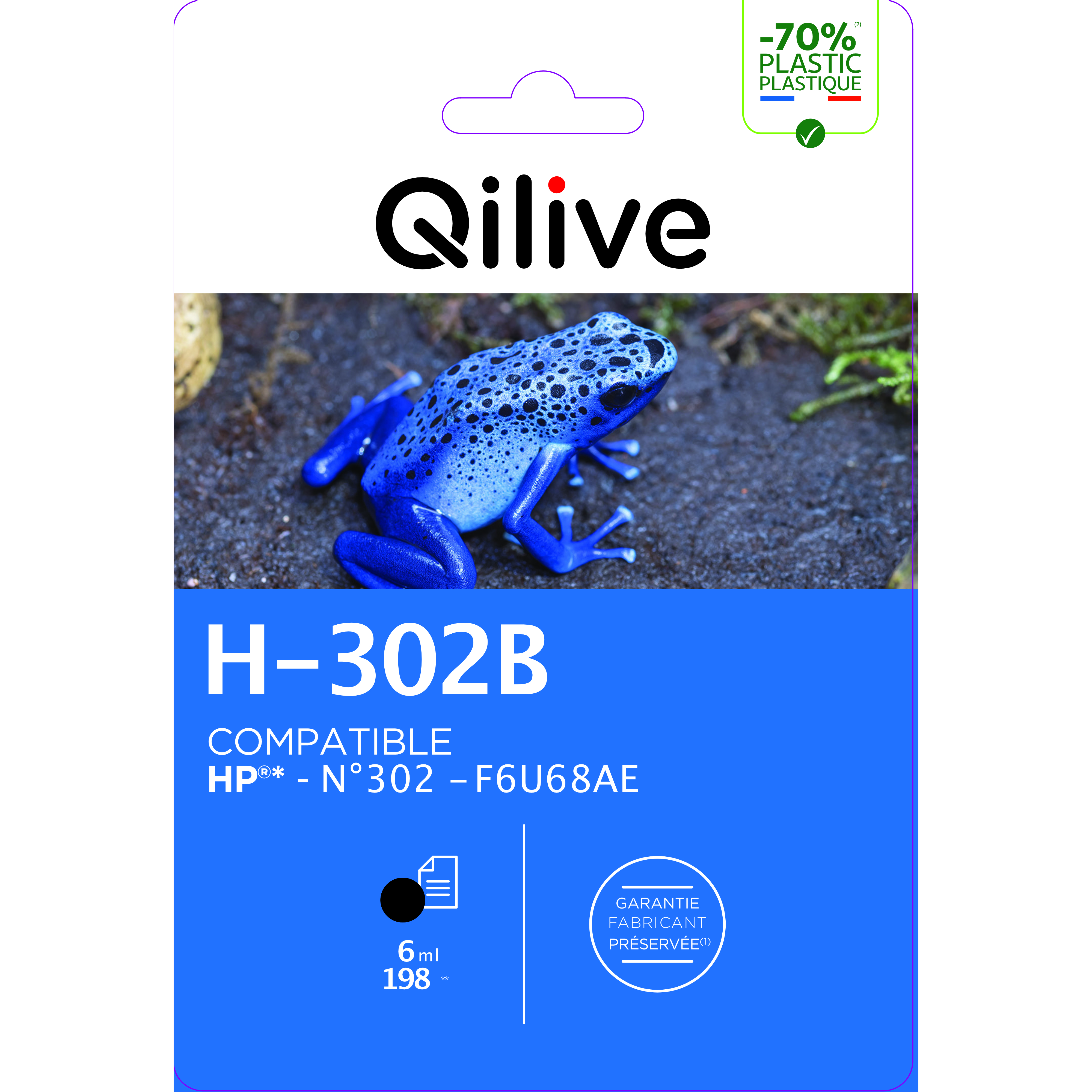 Grâce à la technologie d'impression Jet d'encre, la cartouche QILIVE H-302B assure une application de l'encre fluide et uniforme, pour des résultats fiables à chaque impression.