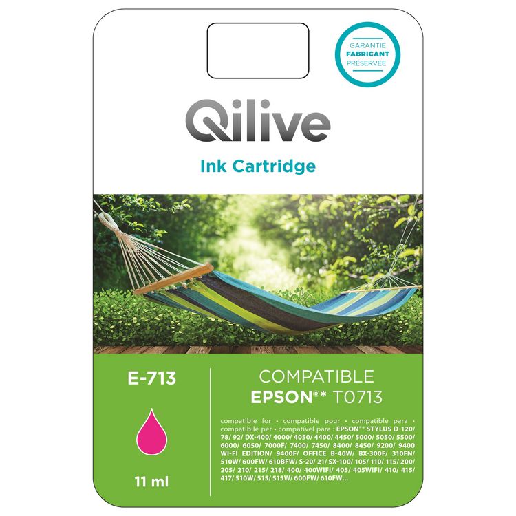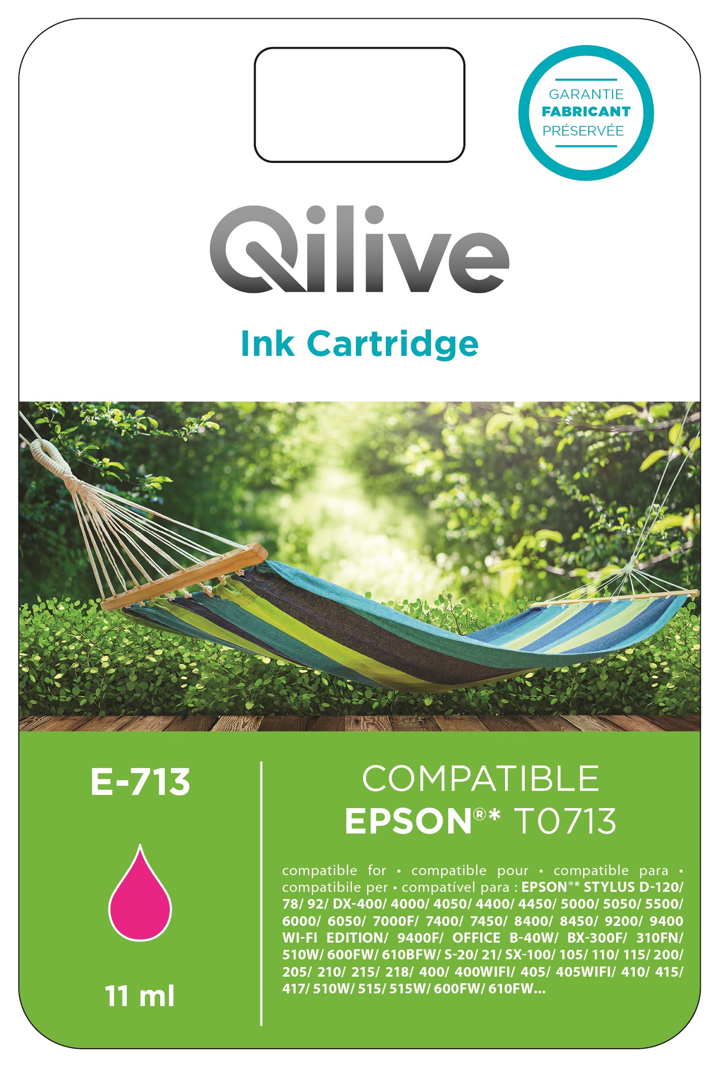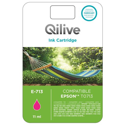 QILIVE Cartouche Magenta E-713Cette cartouche est compatible avec l'imprimante EPSON T071340 - Guépard - MAGENTA.Qilive est née pour permettre aux clients Auchan d'accéder à la meilleure technologie, au meilleur prix. Qilive, c'est un développement permanent des fonctionnalités et des innovations te